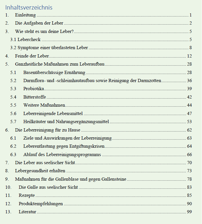 Das E-Book ist extra so gestaltet, dass du alle Tipps einfach und ohne großen Mehraufwand in deinen Alltag integrieren kannst. Im Vergleich zur Internetrecherche auf eigene Faust kommst du damit wesentlich schneller an dein Ziel. Gerade die beschriebene Leberreinigung kann problemlos in den Arbeitsalltag mitaufgenommen werden.